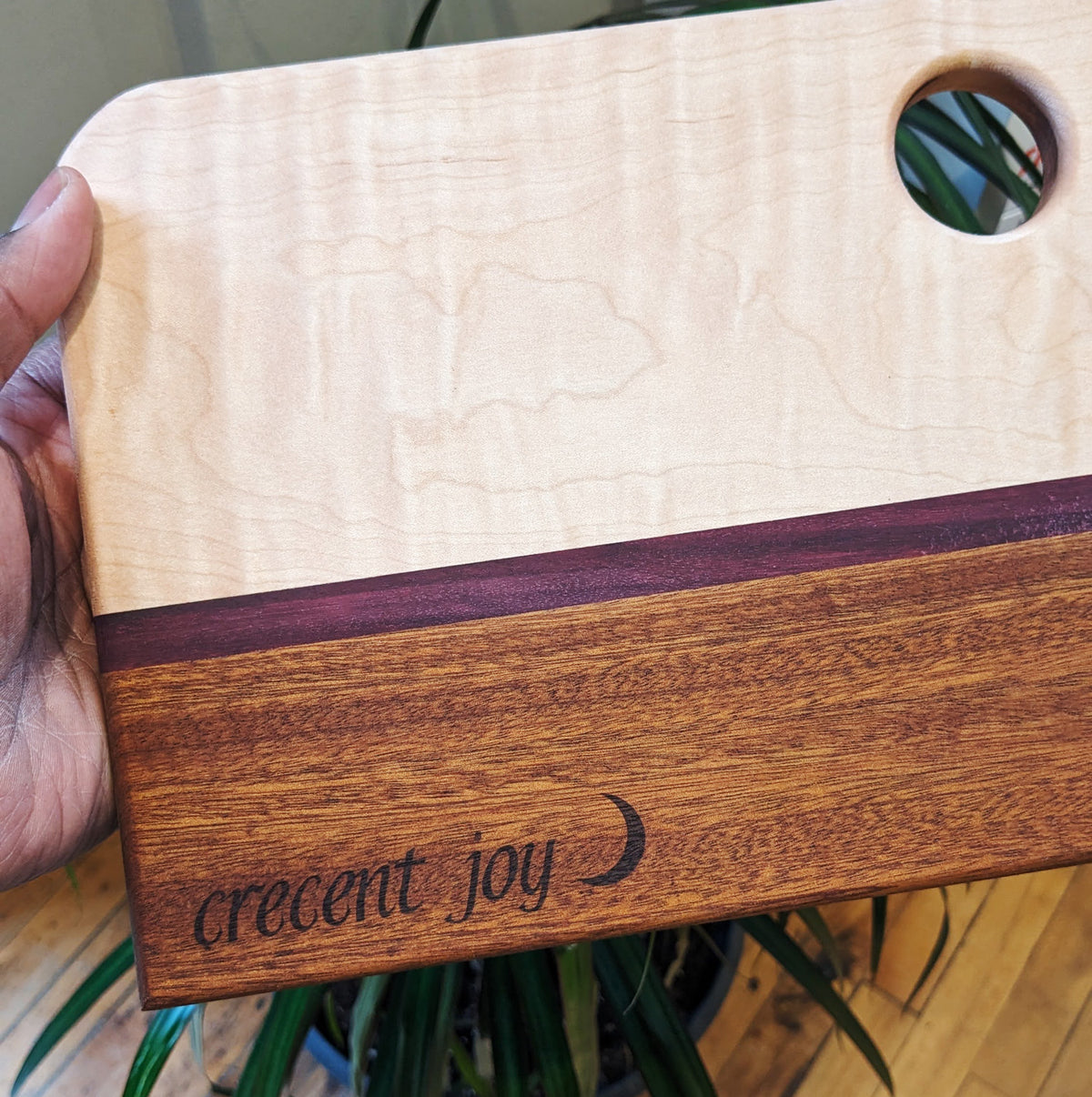 We work with a wide range of materials, including wood, acrylic, glass, plastic and some metals. And, we collaborate across a variety of industries and professions, including artists, designers, architects and woodworkers.